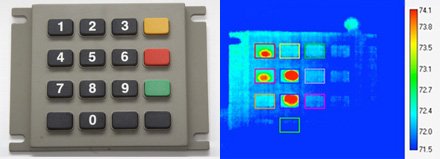 The PIN digits you punch into an ATM’s keypad to authenticate your transactions are leaving traces of themselves behind in the form of heat, says a paper recently presented by a team of UC San Diego security researchers. Someone following immediately behind an ATM user can use a digital infrared camera to determine what keys were pushed with about 80 percent accuracy, their study shows. Even a full minute later the camera can pick up the correct digits about half the time.