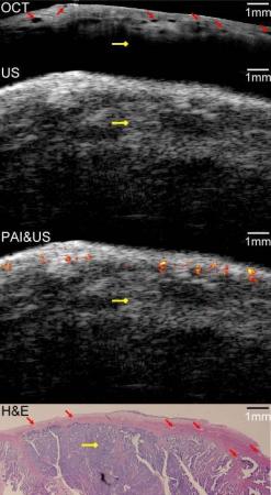 现在,使用这种全新的混合成像技术将能有效的进行卵巢癌的早期诊断。通过使用这台机器,科学家们能通过结合光声成像的对照照片、光学连续X线断层摄影术成像的高清表面照片、以及脉冲回波超声成像的组织深度成像照片来对卵巢癌进行诊断。他们在最新一期的《Biomedical Optics Express》杂志中详细描述了测试方法和结果。