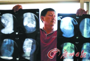 9月8日,在深圳市儿童医院内,患儿的爷爷展示深圳市儿童医院给患儿拍的X光片。患儿家属对深圳市儿童医院多次拍摄X光片的做法表示质疑。(图)