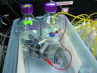 如今,Logan和宾夕法尼亚州立大学的环境工程师Younggy Kim在本周的美国《国家科学院院刊》网络版上报告说,他们完成了一些其他研究团队从未做过的事——在没有任何外部能源的前提下,成功地将两种装置结合在一起,进而产生了氢气。其装置原型包含有两部分:一部分存放有细菌及其营养物质,而另一部分则储存有用来产生氢气的盐水——它们被5个组合气室所分离,用来循环盐水和淡水。这些组合气室能够产生0.5到0.6伏特的电压——研究人员表示,这已经足够让微生物燃料电池产生氢气了,而其中的细菌则以醋酸化合物为食。