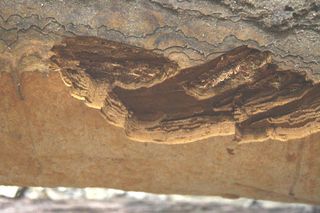真菌子实体,俗称蘑菇,是许多大型真菌的有性生殖阶段,可产生孢子(类似于植物的种子)进行繁殖。该研究中所报道的真菌是椭圆嗜蓝孢孔菌Fomitiporia ellipsoidea B.K. Cui & Y.C. Dai,隶属于担子菌门,伞菌亚门,伞菌纲,锈革孔菌目,锈革孔菌科。这个巨大的子实体是2010年戴玉成研究员在海南进行木腐菌资源调查的过程中发现的,其位于海拔958米的原始林中,平伏生长于一粗壮的热带树木——托盘青冈(Cyclobalanopsis patelliformis)倒木下方。
