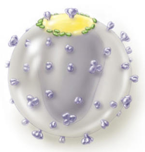 HIV病毒外壳模型的胆固醇组成部分(图中黄色区域)