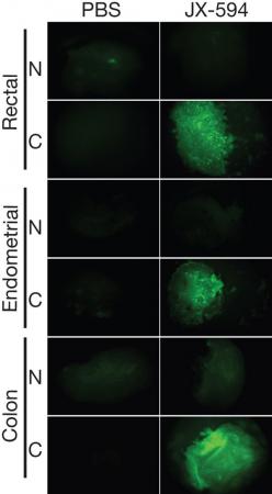 研究包括23名(7名来自渥太华医院)已发生多个器官转移、常规治疗无效的晚期癌症患者。这些患者分别接受了5种剂量的病毒JX-594单次静脉注射,并在8~10天后进行了活检。在两个最高剂量组的87%患者中发现了病毒在肿瘤中复制的证据,而正常组织没有发现病毒复制。在所有患者中发现,肿瘤会选择性表达一种通过基因工程插入到病毒中用于帮助探测的外部基因。患者对各种剂量病毒的耐受良好,只有轻、中度的流感症状,持续时间不到一天。