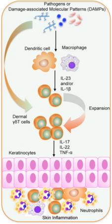 上海交通大学医学院附属瑞金医院皮肤科与美国路易斯维尔大学医学院免疫、肿瘤与生物医学中心严俊教授课题组合作的成果——“真皮γδT细胞是炎症性皮肤病IL-17的主要产生细胞”发表在最新一期的国际医学顶级杂志——《免疫》(Immunity)杂志上。该文第一、第二作者为瑞金医院青年医师蔡怡华和沈雁。