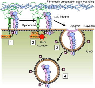 A syndecan-4 hair trigger initiates wound healing through caveolin- and RhoG-regulated integrin endocytosis