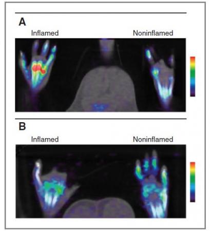 在证明了这种氟化物是COX-2的抑制剂后,科学家们将其改成了具有放射性的氟元素(18-F),通过静脉注射这种18-F化合物到动物体内,他们才拥有足够的信号来进行PET成像。