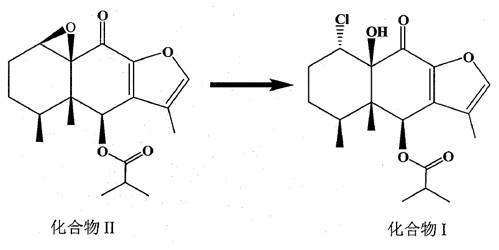 研究人员以菊科植物蹄叶橐吾为原料,制备出了倍半萜类化合物(结构式如化合物I所示)。由于该倍半萜类化合物在植物中的含量低、直接制备较难,研究人员针对性地从菊科植物蹄叶橐吾原料中首先制备了其前体化合物II,并采用简捷的一步化学反应,将其转化为目标化合物I。该倍半萜对口腔上皮癌细胞生长显示抑制活性,明显抑制金黄色葡萄球菌和乙型溶血性链球菌生长。