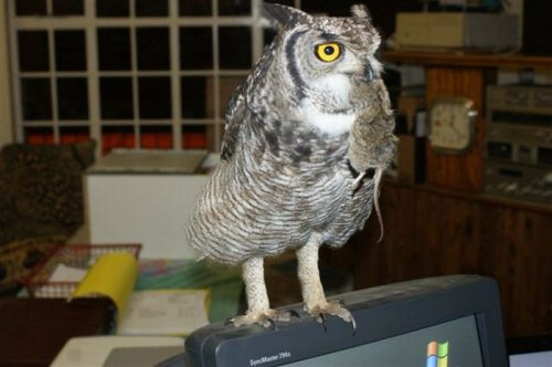 四年前南非的一名男子救了一只猫头鹰(严格说应该是一只“雕鸮”),花了两个月的时间精心护理它直到痊愈。在这期间这猫头鹰跟他家里的猫成了亲密无间的好朋友。它伤好了之后还会“常回家看看”,而且还不是空手来的哦,每次来都会带上珍贵的礼物——肥美的老鼠、蛇什么的,以至于猫每次看到猫头鹰回来都特别高兴。