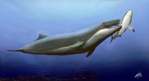 科学家推测,这头远古鲸鱼是凶猛的“猎手”,在2500万年前从地球上消失。虽然它们可能是现代须鲸的祖先,但与温顺的须鲸不同,这种鲸鱼有两排尖利的牙齿和利于捕食的巨眼。