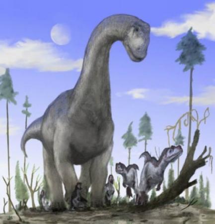 这是已经灭绝的蜥脚类恐龙——圆顶龙。圆顶龙大约1亿年前生活在当今的撒哈拉沙漠地区。