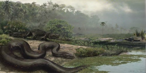这条已经灭绝的巨蟒可能让好莱坞电影中描写的史前巨蟒相形见绌。研究人员估计,此类巨蟒重达2500磅(约合1140公斤),从鼻子到尾端长约43英尺(13米),是一种像水蟒一样的无毒大蟒,距今6000万年前生活在南美热带雨林。