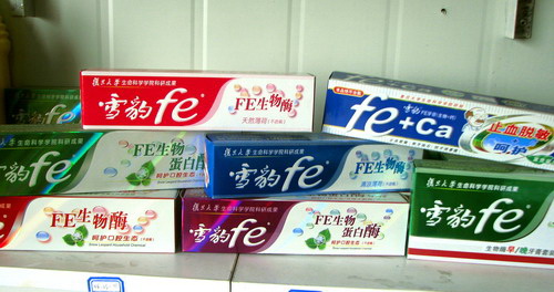 科研人员又应用FE技术针对口腔溃疡,牙龈出血,牙本质敏感,刷牙作呕等口腔问题,攻克了多项技术难题,延伸研发成功“FE生物酶牙膏”。面市的不同款式的FE牙膏标注着2.5-9.8不等的“酶指数”,表示其生物酶含量的高低,“酶指数”越高即活性含量越高,效果越好,价格也就越高。