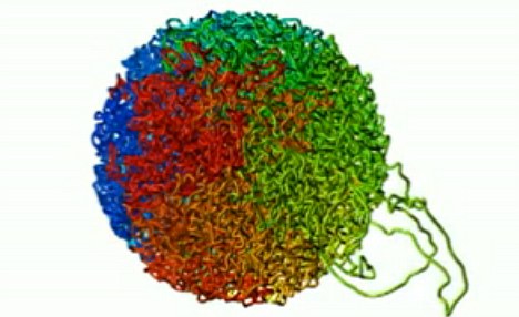 不规则球体看上去像毛线团或者是面条,它是完全散开的,很容易扯开和重装。然而,在理解人体细胞如何执行功能方面,基因组折叠方式起到关键的作用。