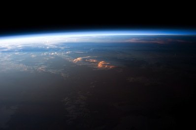 从国际空间站看到的地球的稀薄的可呼吸的大气