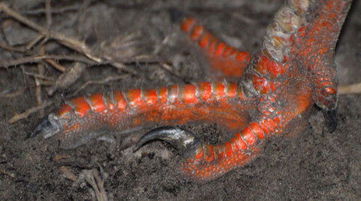 更有趣的是,这批恐龙足迹显示其第二趾拥有一个超过其它趾的长爪,“这可能类似于现生的叫鹤”,邢立达介绍说,叫鹤是一种大型鸟类,叫声洪亮,在地面上奔跑捕食,其脚上醒目的大爪是捕猎的杀手锏。