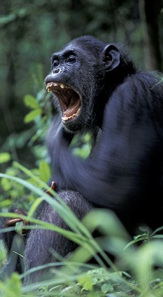 科学家把一条假蛇放在乌干达黑猩猩经过的路上,看它们的反应。当一个黑猩猩发现了一条蛇,它马上发出“呼呼”的警告声,让组里的其他成员都可以听到。当其他成员赶到现场时,它们重复警告以确保新来的人知道这里有一条蛇。如果组里的成员都意识到了危险,它们就不太可能重复这种警告了。
