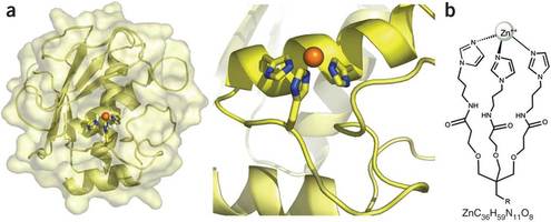 最初,Sagi和其他人已设计出直接靶向蛋白酶的合成药物分子。但这些药物被证明是相当粗糙的工具,有着极其严重的副作用。机体通常产生它自己的MMP抑制剂,也称为TIMPs,作为使这些酶正常的严格监管程序的一部分。与合成药物相反的是,这些以高度选择性的方式工作。每种TIMPs上的臂被精确地构建成可达作为活性位隐蔽的酶内裂口--被三个组氨酸肽包围的金属锌离子--像一个合适的软木塞一样关闭它。"不幸的是,"Sagi说,"这种精度的合成很难复制。"