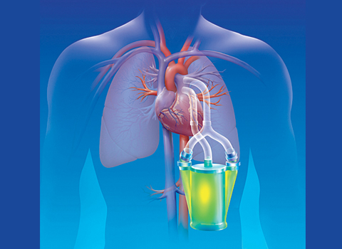 这个设备是一个血液/氧流量交换器,与体内的呼吸系统结合在一起,是为意识清醒、可以自己行动,但肺部受损或产生病变的人呼吸而设计的。