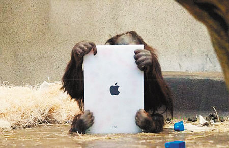 自去年5月起,密尔沃基动物园红毛猩猩饲养员特里什·汗每周把iPad拿给猩猩们玩上一会儿。这部iPad由动物园一名志愿者捐赠。
