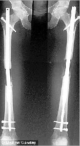 实施手术所需要的不仅是金钱,还有毅力。“拉骨增高”手术首先要在托马斯的大腿骨上钻个洞,以便插入28厘米长的可伸缩不锈钢杆,钢杆两端通过螺钉和腿骨紧紧固定,然后生将他的腿骨从大腿中间锯成两截。据悉,托马斯断裂腿骨间的空隙,会在术后8个月被长出的新骨逐渐填满,腿骨上的螺钉会在18个月后通过第二次手术移除掉。除了手术后的疼痛,患者还须面临由于肌肉和肌腱位置改变,所带来的其他不适。专家指出,腿骨被拉长的“极限长度”,是由患者的身体可接受程度而决定。