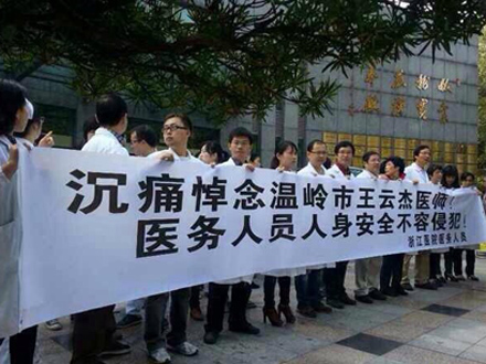 10月25日11时08分,温岭市第一人民医院耳鼻咽喉科主任医师王云杰倒在了自己的血泊中,而他面对的竟是患者的屠刀。这场医患矛盾演变的悲剧,引爆了医疗卫生界长期压抑的情绪。10月28日,数百名身穿白大褂、面带口罩的各地医生、护士聚集在温岭一院,呼吁关注医护人员的人身安全问题。“10•25”温岭袭医事件只是众多医患暴力冲突的冰山一角。温岭案发前全国已连续发生6起患者伤医事件。医生正成为“高危行业”,难有尊严可寻;病患因为看病难、看病贵,心存积怨。尽管新医改启动已经5年,医患双方却各怀委屈渐行渐远。