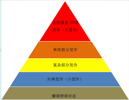 癫痫的发病分为5个阶段:癫痫持续状态-失神发作-复杂部分发作-单纯部分发作-全面强直阵挛发作。