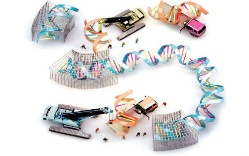 两个实验室的科学家都意识到,他们或许可以用Cas9蛋白来进行基因组编辑。基因组编辑是基因工程中的一种方法,酶是这一过程中的“分子剪刀”,可以剪切DNA。这种酶名叫核酸酶(nuclease),能在特定的位点切断双链DNA。DNA断裂后,细胞会对断裂位点进行修复。有时,细胞中一些人为导入的基因片段,会在修复的过程中插入这些位点。杜德娜和卡彭蒂耶刚开始合作的时候,科学家如果想改变或关闭一个基因,最先进的方法,是定制一种能找到特定DNA位点并对其进行切割的酶。换句话说,每修饰一次基因,科学家都不得不设计一种新的蛋白,专门针对想要修饰的DNA序列。