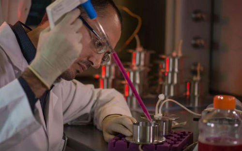 研究人员将肉瘤细胞放置于多孔生物惰性支架中,并将支架放到生物反应器中,模拟细胞的生长环境使其发展成为骨骼组织。通过改变生物反应器的流体粘度、流率和剪切应力等使细胞受到生物力学刺激。