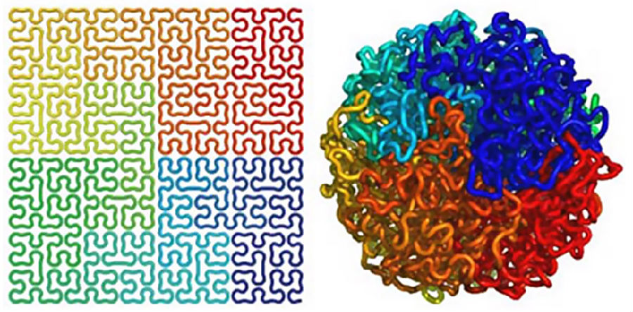 我们的生物课本通常会将基因描述成二维线性的一段功能序列,而实际上,基因是以某种方式被排列,存在空间结构的。如果将人的所有染色体相连并充分伸展的话,其长度可达2米左右,如此庞大的DNA链却是全部储存在直径约10微米的细胞核中。
