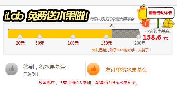听说,已经有实验室的小伙伴拿到了158块钱的水果了……那你呢?