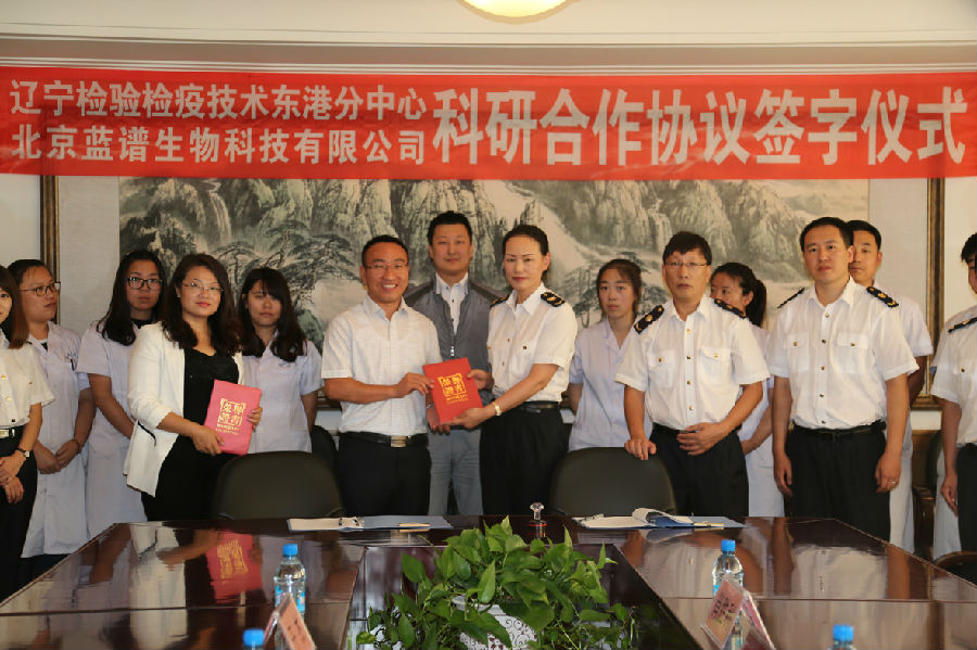 北京蓝谱生物李奉京总经理与辽宁检验检疫技术东港分中心于杰主任签署科研合作协议