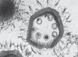 这种会感染其它病毒的病毒被称作噬病毒体,字面意思是“能吞噬病毒的东西”,至今它依旧是个谜。到目前为止,似乎大部分巨型病毒会感染担心有机体比如变形虫,科学家们最近了解到它们也许在调节巨型病毒及其猎物之间扮演了关键角色。一种被称作Sputnik的噬病毒体也许能赋予变形虫某种针对巨型病毒的免疫能力。该研究被发表在《美国国家科学院院报》上。