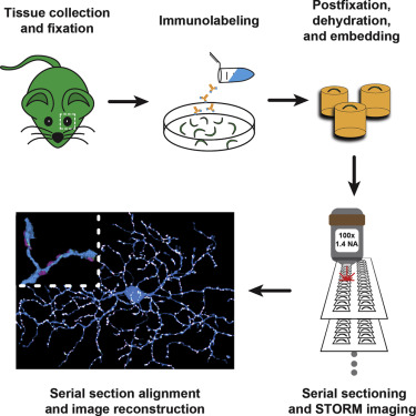 从单个神经元的突触区域到整个大脑的布线图,在多个尺度上绘制出突触连接,对于了解神经回路的功能机制以及回路缺陷如何导致了精神疾病至关重要。绘制突触连接图的理想平台应该可以提供高分辨率的结构信息,来可靠地识别突触连接及准确将突触分配给神经元;能够成像诸如神经递质受体一类的,对确定突触身份和特性极为重要的特异分子;具有自动图像分割能力能够有效地分析大容积重建成像来捕获整个神经系统或回路。
