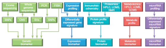 生物标志物的覆盖范围如此之广,其研究技术也是多种多样。几乎所有可用于研究核酸、蛋白质、糖类等生物大分子的技术都能用于生物标志物研究上。