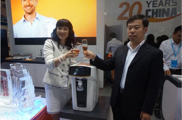 在发布会上,卢莉琼女士首先发表致辞,欢迎大家一起见证赛多利斯又一个极具意义的时刻!卢总介绍到赛多利斯是一个有着深厚技术沉淀的企业,许多技术都处于世界领先地位。同时赛多利斯秉持着设计的最高境界---简约而不简单,这也是对赛多利斯新水机的完美概括。随后,张博钦经理阐述了新纯水系统的特点和性能,并就介绍的内容和现场观众进行了有奖问答的互动。最后大家一起举杯,庆祝ariummini新型纯水系统的盛大上市。