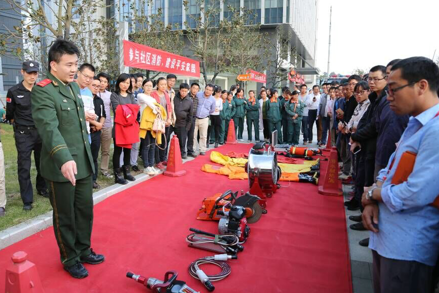 在全国消防日来临之际,为确保园区消防安全形势持续稳定,增强企业消防安全管理意识,提高自防自救能力。11月6日,南京生物医药谷邀请南京高新区消防大队进行统一部署,举行了一次理论教学与实地演习相结合的综合性消防安全演练。南京生物医药谷副主任徐守苗、南京高新区消防大队队长赵龙玉、以及60多家园区企业代表参与了消防知识培训及实地演练。