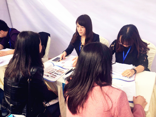招聘会当天,人山人海!威斯腾生物人事专员谷老师、孙老师收到大量的求职简历,目前正在审核,期待你接到面试电话吧!