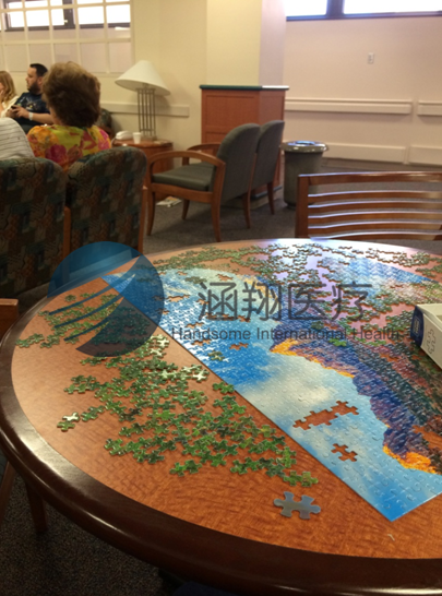 我们在等医生的时候,最喜欢玩MD安德森给准备的桌游:拼图游戏,但是经常还没拼完就轮到了我们,我一直没机会拼出完整图案。