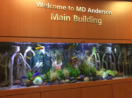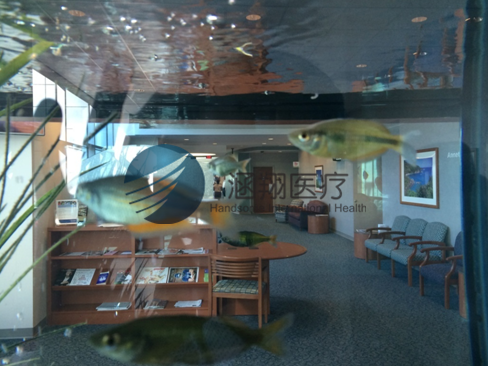 在MD安德森求医久了,我发现这家医院的装饰非常喜欢用鱼缸,绝大多数的等候区都有鱼缸,而且尺寸还都不小。