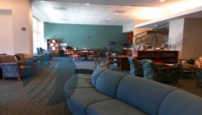 小圆桌配4把椅子,像是咖啡厅的惬意的布局,然而这一切在MD安德森的等待区里很常见。