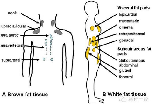 棕色脂肪之所以呈现出棕色,是因为组织内部含有众多毛细血管,并且棕色脂肪细胞内含有大量的线粒体,而这些线粒体正是棕色细胞释放热量的核心因素。棕色脂肪存在于所有哺乳动物体内,但主要是存在于幼小的动物体内。在胚胎阶段,人类的棕色脂肪组织就开始形成,到了在新生儿阶段,棕色脂肪组织达到最高峰,然后便逐渐消退。