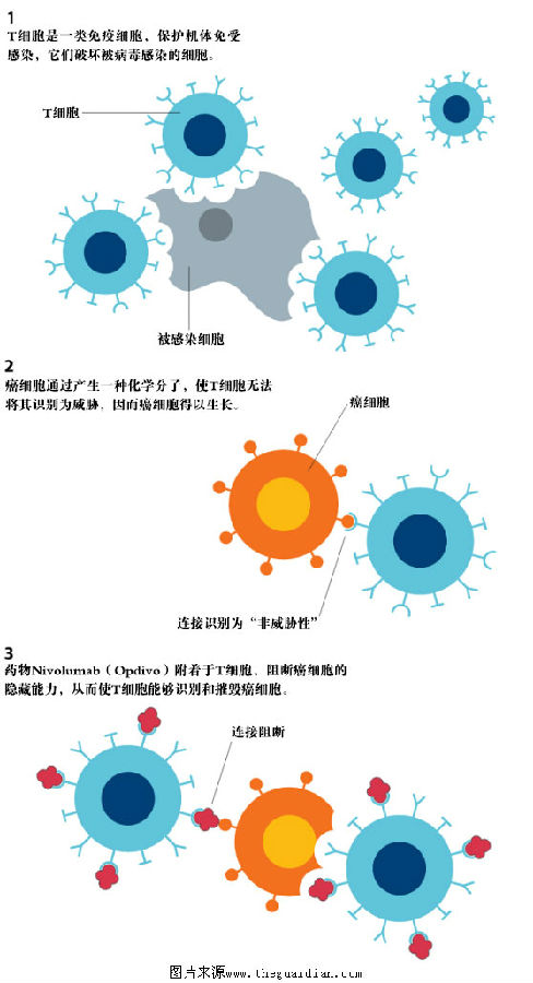 免疫疗法是近年来癌症治疗领域最鼓舞人心的重大突破。在许多癌症药物研究看似碰壁的时候,这一疗法开始腾飞。许多传统化疗药物,对于只剩几个月甚至几周生存期的晚期癌症患者而言,基本没什么效果。然而,致力于免疫疗法研究的科学家们却从完全不一样的角度入手,通过激发机体自身的防御机制来对抗体内的癌细胞,并取得显著成效。