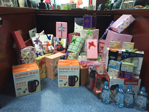 最温馨的环节便是分享自己的心里话了,每个人随机选取一张贺卡,轮流念出“Ta”的心里话和新年愿望。员工互赠礼物把茶话会推向了高潮,抽到相同数字的员工互赠礼物。每一份礼物都是经过大家精心挑选的,里面承载了每个人的美好祝愿,有缘分的两个人之间交换礼物并合影留念。