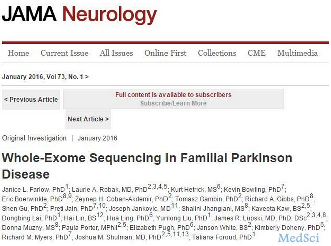 贝勒医学院分子和人类遗传学儿科学系、人类基因组测序中心和德克萨斯大学健康科学中心的研究人员最新一项报道称,在家族性帕金森病患者发现几个关键的突变基因,包括TNK2和TNR有稀有突变。在12个家系中,这两个基因有9个突变位点。这项研究为深入研究帕金森病的致病基因提供依据。