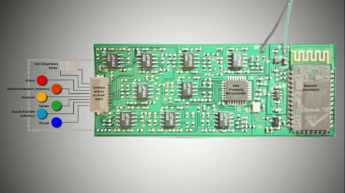 实际上通过汗液分析人体血液的生化指标并不是什么新鲜事物,早在上个世纪四十年代就有人在研究了(2)。但是一直以来有两个问题困扰着意欲利用汗液检测人体生化指标研究人员:可穿戴设备的柔韧性和计算能力。