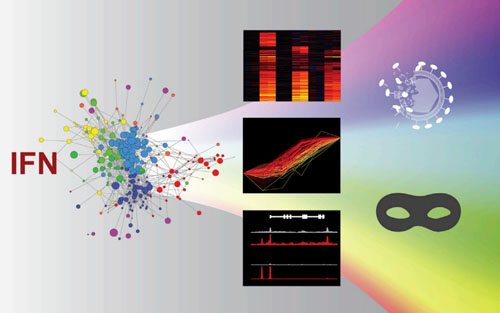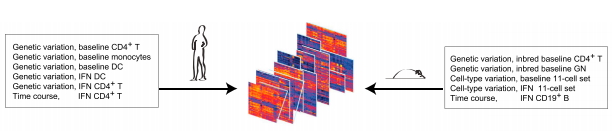 这些干扰素诱导基因因细胞类型的特异性和动力学,干扰素的敏感性而不同,并显示了在染色质构型的潜在变化。此研究结合1398例人类和小鼠的数据计算并推断干扰素诱导基因的模型及其调节因子,并在这两个物种验证此遗传分析。一些干扰素诱导基因由Stat1 / 2和IRF9以及ISRE DNA模块调控,但其它的似乎依赖于非规范因素。研究得到的这个干扰素调控网络帮助解释JAK1抑制剂的药理、IFN刺激条件下不同的簇的影响,和干扰素信号与人类疾病相关之处,揭示了细微的差异,如欧洲人或亚洲人祖先的影响。