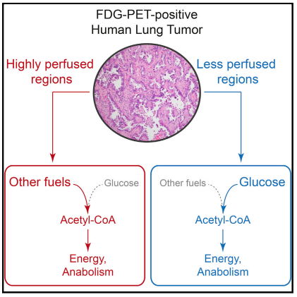 该研究在手术中采用13C葡萄糖输液结合术前多态成像新技术,在九例非小细胞肺癌患者中比较了肿瘤和良性肺之间的代谢。而在这些肿瘤中糖酵解增强,葡萄糖氧化是很常见的。研究观察到在患者每个人中的多种营养素氧化的证据,包括乳酸作为一种潜在的碳源。