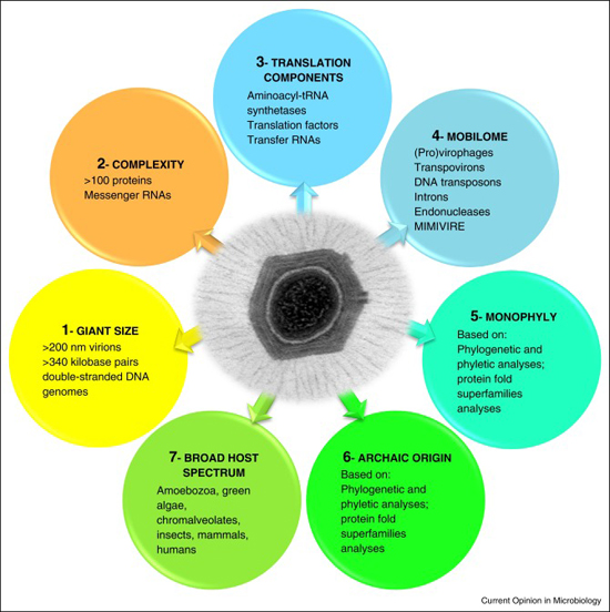 Mimiviruses很大,直径约半微米,是艾滋病毒、流感病毒的4倍多,在光学显微镜下可见。它们的基因组比一些细菌还大;与大多数病毒不同,它们拥有能够产生氨基酸、DNA碱基和复杂蛋白的基因。领导该研究的法国Aix-Marseille大学的微生物学家Didier Raoult说:“这意味着它们模糊了病毒和细菌之间的界限。”论文的共同领导者Bernard La Scola表示,他不认为Mimiviruses是一种典型的病毒,反而更像原核生物。