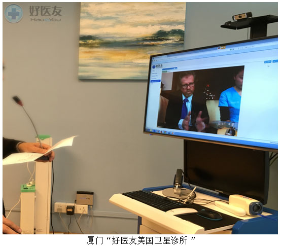 与您所接触过的传统门诊不同,“中美医生联合门诊”,是由线下中国医生(即卫星诊所现场医生)和线上(即远程医疗)美国医生共同为您看诊。诊所现场医生先对您进行初诊,包括系统的问诊和完善必要的相关检查,待病历资料齐全后将其同步至好医友医疗信息平台(云存储),让美国医生审阅。美国医生按照排班时间与您进行30分钟左右的“面对面”视频门诊。根据看诊需要,卫星诊所现场医生还将配合美国医生同步使用现场配备的尖端远程医疗设备,采集您的体征信息和高清医疗影像,并根据病情协助您进行有针对性的咨询,以“医生对接医生”的专业模式,帮您制定最佳诊疗方案!
