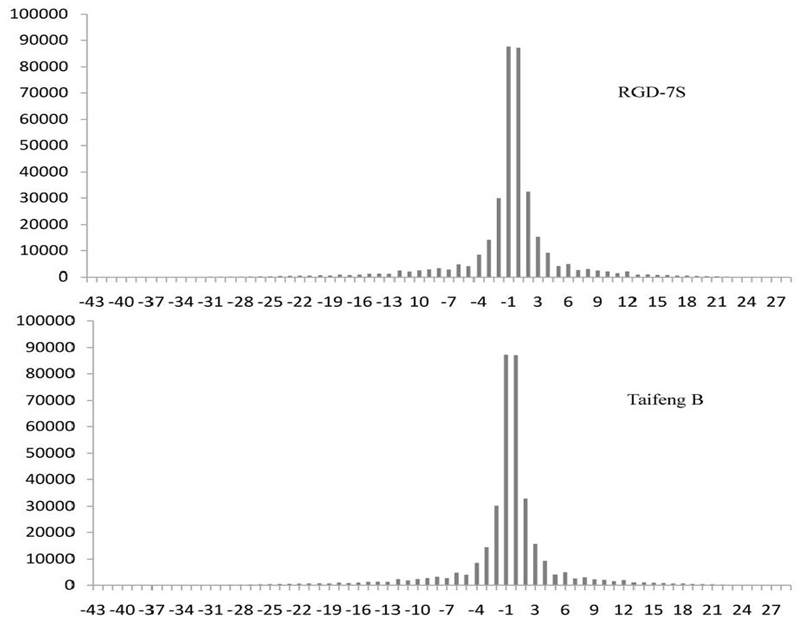 图1. RGD-7S和Taifeng B不同InDels大小分布